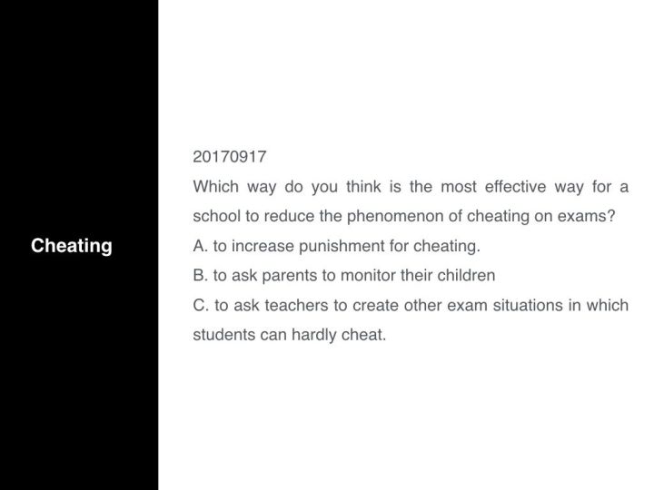 所以我們解決作弊比較好的方式就是第3個方式了,就是老師要創造一個難作弊的環境
