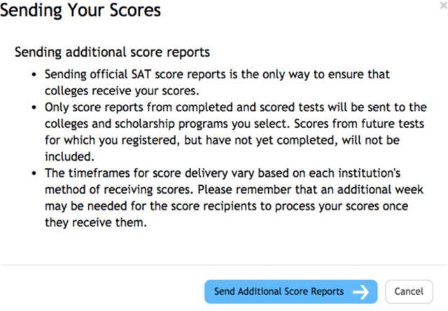 每位考生註冊考試後都有四次免費送分機會。在考試之後9天內,考生可隨時更新SAT考分接收人信息。