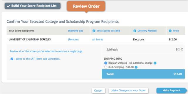 Step 8、勾上左側「I agree to the SAT Terms and Conditions」,選擇「Regular Shipping」,即普通寄送,一般情況下寄送時間為一週,無需額外費用。如需加急,選擇」Rush Shipping」,寄送時間為三個工作日,需額外繳費31美金。最後點擊」Make Payment」。