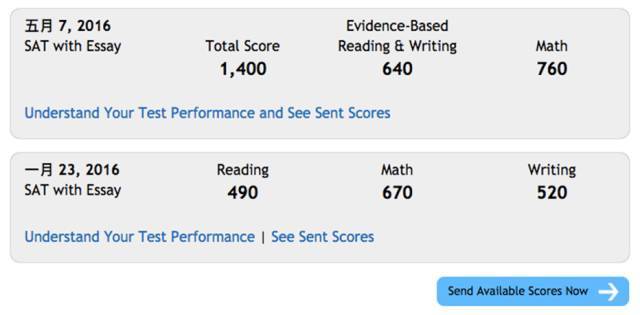 大學將提取申請者的單次SAT考試總分最高成績(包括數學,閱讀和寫作)。但大學會參考申請者提交的每一次的成績。申請者可以自由提交自己認為可用的分數給大學。